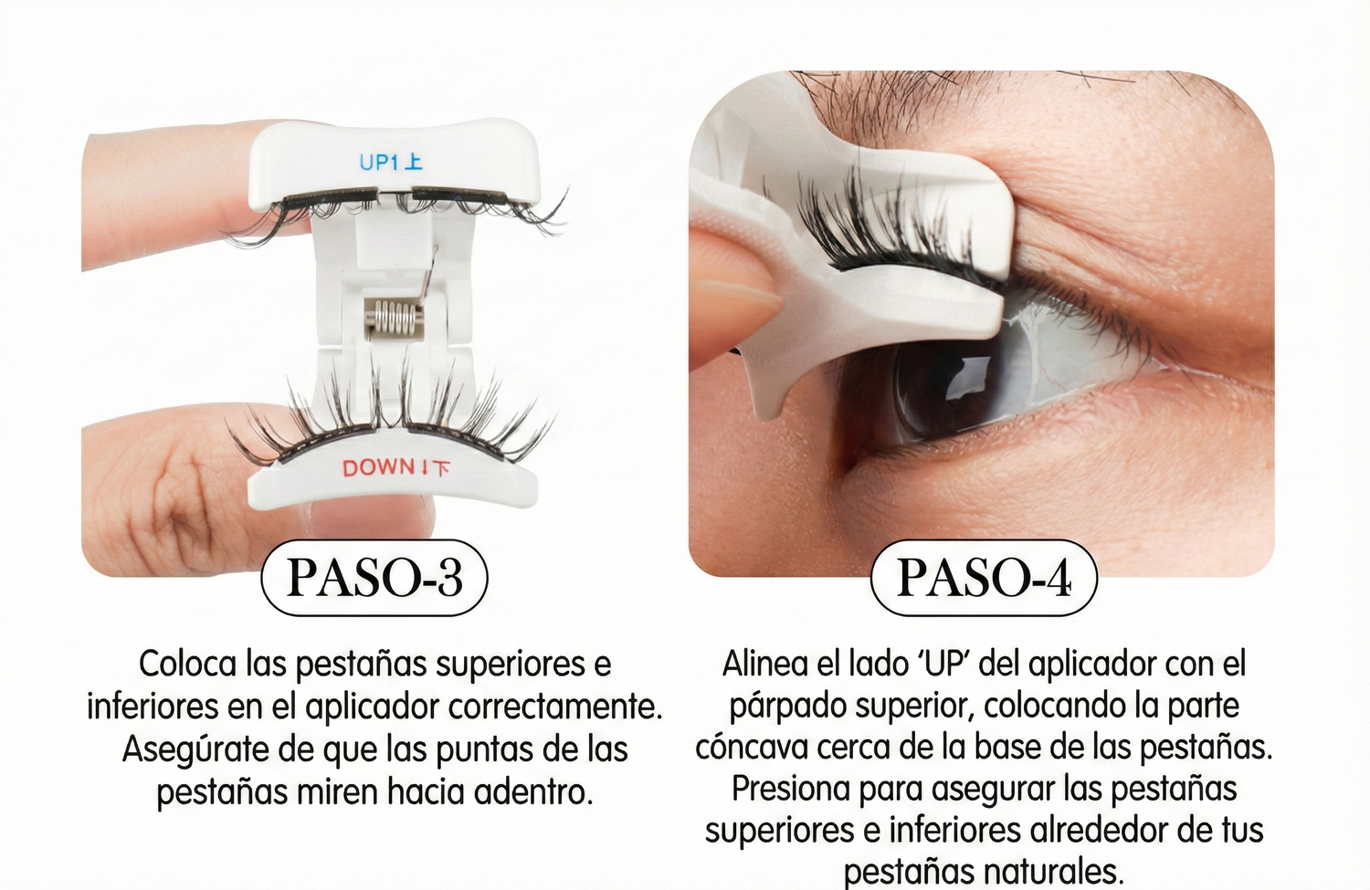 Están diseñadas con un sistema de banda flexible y magnética que se adapta automáticamente al contorno natural de tu ojo, sin importar el tamaño de tus pestañas ni la forma de tus ojos.